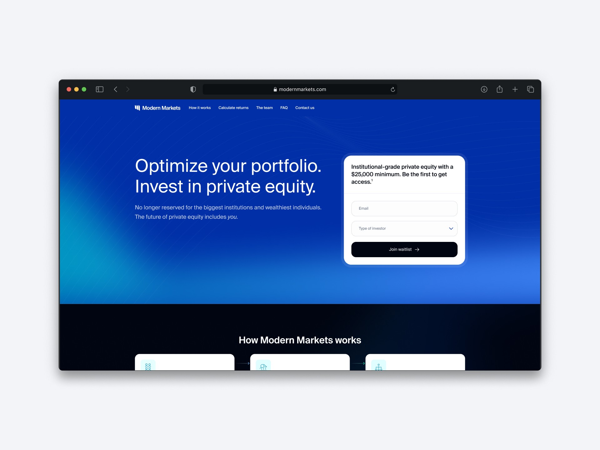 An investment platform democratising private equity investments to retail investors.